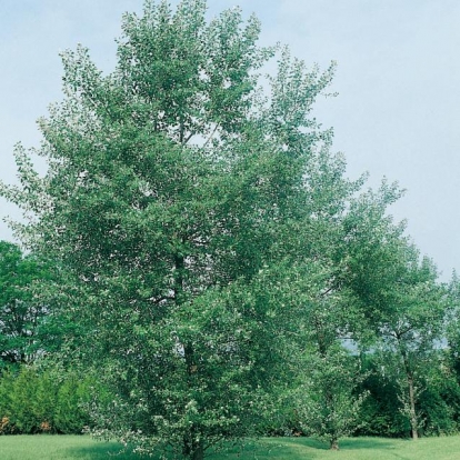 Populus Alba è un albero dalla forma arrotondata e a fogliame lobato verde chiaro lucido sopra, bianco lanuginoso sotto.