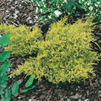 Juniperus x Media Gold Sovereign® 'Blound' è una conifera, più compatta di 'Old Gold' e dal colore giallo molto luminoso.