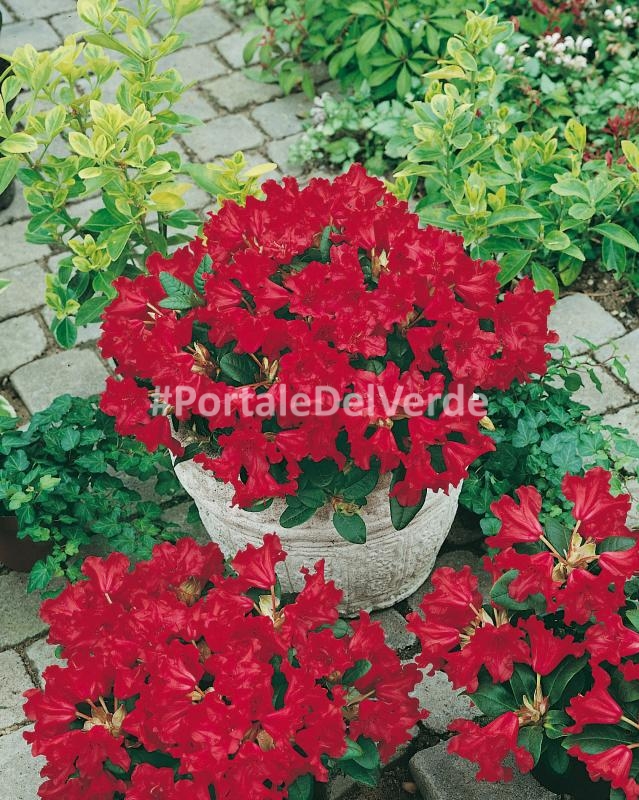 Rhododendron ‘Scarlet Wonder’ possiede fiori rosso scuro.