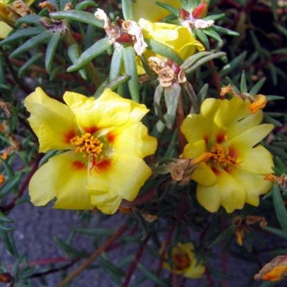 Portulaca grandiflora è una pianta grassa succulenta annuale, alta sino a 30 cm., con fusti prostrati e diffusi a rami ascendenti; foglie lineari o semicilindriche lunghe 1-2 cm., con ciuffi di peli all'ascella.