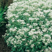 I piccoli capolini ricordano i semprevivi e sono decorativi grazie alle loro brattee bianche.
