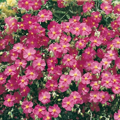 Helianthemum 'Ben Hope' è una pianta perenne Ibrida a fogliame verde grigiastro.
