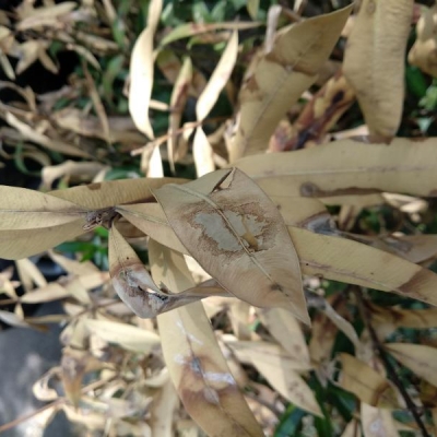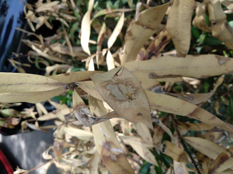 Can you please tell me what's the problem with these Oleanders. Many of them across the town are like these, dry leafs, and some deformations and necrosis on stems. Thanks. - Mi saprebbe dire qual è il problema di questi oleandri? Molti di questa per la città sono messi così, foglie secche e alcune deformate con necrosi sugli steli. Grazie