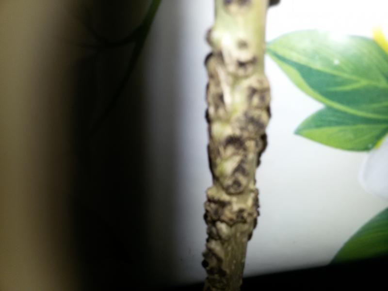 effettivamente potrebbe esserci un inizio di malattia e secondo me l'unica cosa da fare è togliere le parti malate e trattare subito con del rame per "disinfettare" i tagli e circoscrivere la diffusione della malattia.